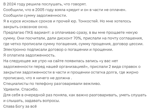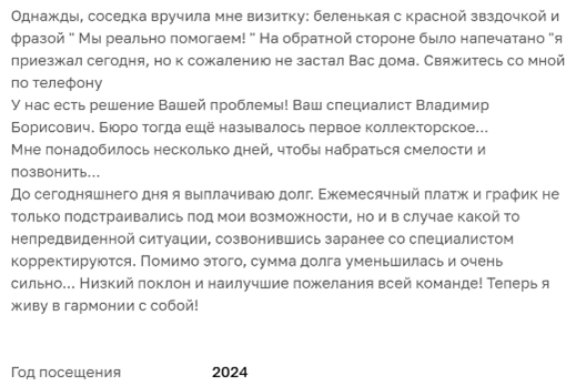 Но есть и довольные должники, например, вот отзыв из Санкт-Петербурга: